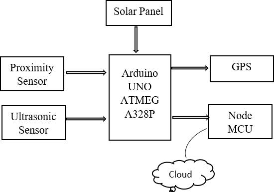 Key Words: Node MCU ESP8266, Arduino ATMEGA328P, Blynk IoT Mobile Application, Proximity Sensor, GPS, Solar Panel.
