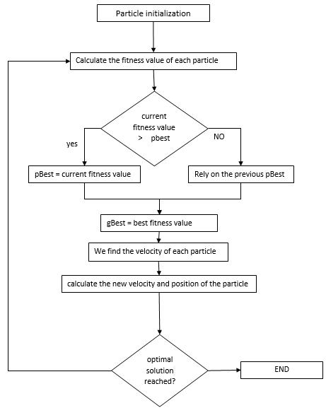ThealgorithmofParticleSwarmOptimizationbelongstothe classofswarmintelligencetechniques,inwhichobtainingthe optimalsolutionisdonebysimulatingthebehaviorofbirds while searching for food [16]. Therefore, any system that depends on this algorithm will initially be formed from a random pool of random solutions. Then, the algorithm searchesfortheoptimalsolutionwithinthisassembly.