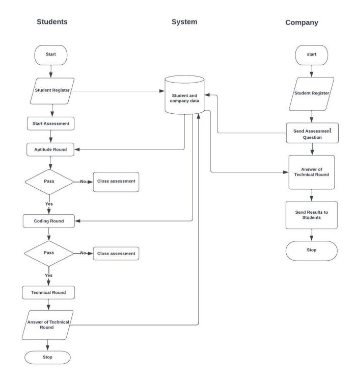 Technology has revolutionized many aspects of our daily lives, including the recruitment process. The computerbased placement system has replaced manual operations in the recruitment of IT companies. Automation of the entire recruitment process has become necessary due to the round-year activity involving thousands of candidates that need to be evaluated. The proposed system aims to reduce the workload and time for organizations to completetheplacementprocess.Itincludesanassessment test,acodinground,andanautomatedtechnicalinterview that is conducted online without any interaction with an interviewer. The results of each round are displayed immediately, allowing the organization to complete the recruitmentprocessinashortperiodoftime.Thissystem is also beneficial for candidates as they can attend the assessments through their smartphones, making it easier and more accessible for them to participate in the recruitment process. The automated placement system is a significant step towards streamlining the recruitment processandensuringthatthebestcandidatesareselected forthejob.