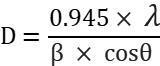 Thesizeofthecrystalisfoundusingthefollowingrelation, Micro-strain(ε)ofthecrystalisfoundusingtherelationgivenbelow, Dislocationdensity(δ)isfoundbythefollowingrelation,