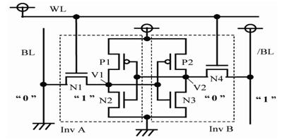 The need for low-power integrated circuits has greatly increased over the past several years as a result of the increasingexpansionofbattery-operateddevicesincluding wireless communication units, portable entertainment devices, and implementable bio-medical chips. SRAM will eventuallyaccountformorethan60%ofSoCs,predictsthe International Technology Roadmap for Semiconductors (ITRS). The problem of consuming power and space is significantly solved when the technology scales by greatly increasingthetransistordensityintheSRAMunits.