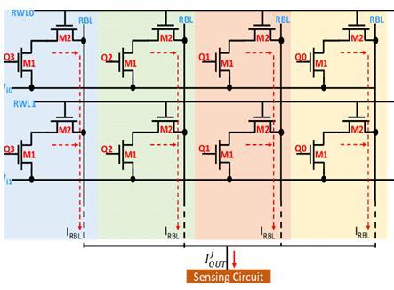 Abstract - TheweightsstoredintheSRAMareturnedinto proportionalvoltagesusingaD/Aconverter,whichishowthe SRAM-based matrix-vector multiplier for in-memory computation functions. These voltages are subsequently multipliedbyaswitched-capacitorstageusinganm-bitdigital inputactivation.Finally,chargesharingisusedtogatherthe output voltages associated with the various multiplication outcomes along one column.