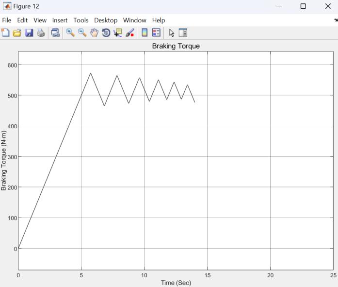 Braking Torque: Chart - 2 illustrates the variation in braking torque applied by the hydraulic brake system during the braking event. It shows how the torque generated due to braking adjusts to keep a constant slip ratio of 0.2, ensuring effective braking while preventing wheellock.