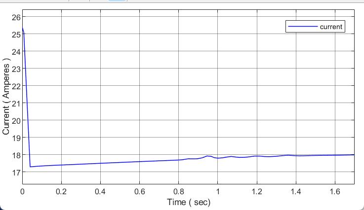 Current:Chart-7showsthevariationofcurrentovertime during the braking event. It highlights the control signal given by the sliding mode controller to keep a constant andoptimalvalueofslipratio.