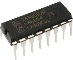 The 74HC595N is an 8bit serial in, parallel out(SIPO). Itis usedforstoringdata andshifting data.ItisusesDflipflop forprocess.Byusingthisshiftregisterwordsfromprogram isshiftedanddisplayedinLED.
