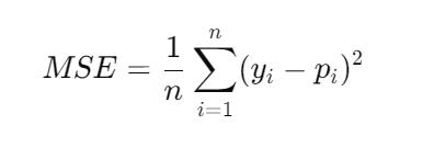 The formula for Mean Squared Error (MSE) can be expressedas:
