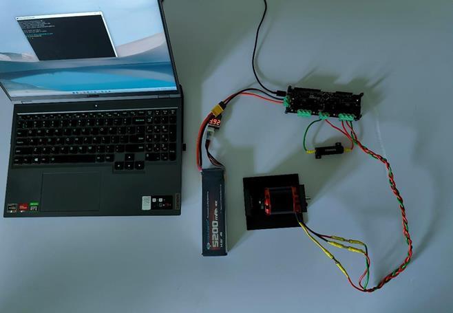 The testing rig described below features a Brushless DC (BLDC) motor paired with an AS5600 Magnetic encoder, forming a crucial setup for evaluating series elastic drive systems. This innovative rig is supported by a customdesigned 3D printed structure, which provides stability andprecisionduringtestingprocedures.TheBLDCmotor, known for its efficiency and controllability, serves as the powerhouse of the setup, driving the series elastic drive mechanism with precision and consistency. The AS5600 Magnetic encoder enhances the functionality of the rig by accurately measuring the motor's rotational position and velocity, enabling precise control and feedback mechanisms. Together, these components create a versatile testing platform that enables researchers and engineers to assess the performance and capabilities of serieselasticdrivesystems,contributingtoadvancements invariousfieldssuchasrobotics,automation,and motion control.