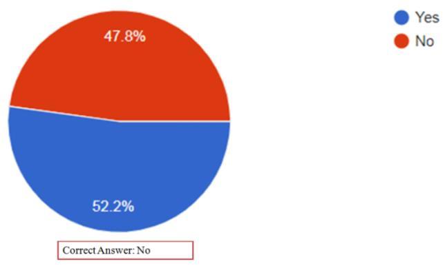 Thecorrectanswerwas“False”.Question2requiredabitof conceptualthinking.31(i.e.67.4%)studentscouldanswerit correctly.