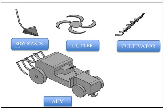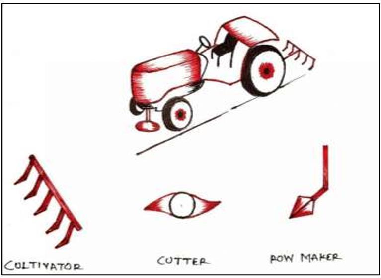 We conducted market surveys to analyze the various tractorsavailableandstudiedtheequipmentusedinthese tractors for agricultural purposes. This research helped identify the specific needs of farmers and the agricultural operations that the mini vehicle will address, including tasks such as grass cutting, cultivating, row-making, and auguring.