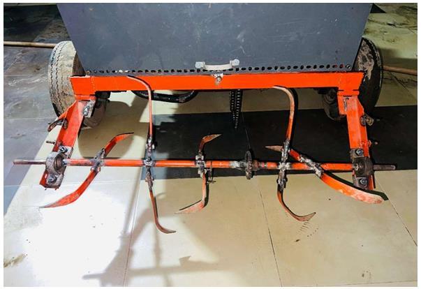● Itismountedattherearonanutweldedtotheframe, creating a V-shaped furrow in the soil as the multipurposeagro-farmvehiclemovesforward.