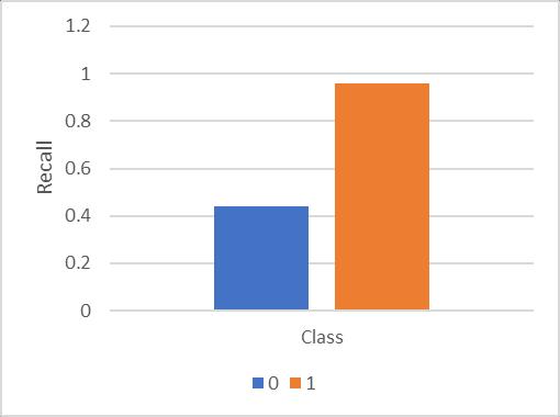 Recall is an alternate method to evaluate the model’s correctness.Figure10showstherecalloftheimplemented CNNmodelaccordingtotheclasstobeclassify.Theretwo classesareavailableforrecognizeandtherecallforboththe classrecognitionisgiveninthisfigure.IntheXaxisofthe diagramnumberofclassesaregivenandYaxisshowsthe recall.