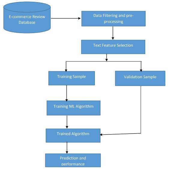 Themainaimoftheproposedwokistoaccurately classify the spam review in an e-commerce platform. The identificationandeliminationoffakereviewsareessentialto dealwiththepartialreviewswhicharefalselydescribingthe qualityofproduct.Therefore,amachinelearningmodelhas beenpresentedinthissection.Additionally,theconceptfor implementationisdemonstratedinFig-1
