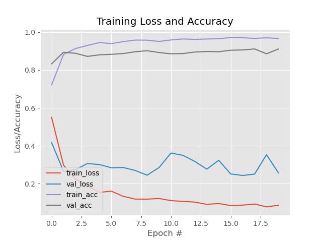 InFig.8showscurveofaccuracy&lossoftrainingand testing/validationphaseforabout20epoch.Inthatgraphit showstheaccuracyoftraining andaccuracyofvalidation differenceislow.Bothtrainingandvalidationaccuracyvalue is above 90%. In terms of loss training loss is lower than validationloss.