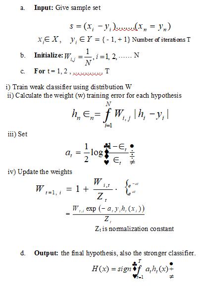 AdaBoost, also known as Adaptive Boosting, is a machine learning method used in an ensemble setting.In basically, that there are a number of features that would capturespecificfacestructures,suchasthelips,thebridge connectingthetwoeyes,ortheeyebrows.However,thiswas not the feature set's sole focus at first. About 180,000 of thesemadeupthefeatureset,whichwasthenreducedto 6000.In this situation, they need a feature selection technique to pick a small subset of characteristics from a largesetthatwouldnotonlypickfeaturesthatperformed betterthantheothersbutwouldalsoremovetheirrelevant ones.Theycreatedweaklearnersbyapplyingeachofthese 180,000 characteristics to the images separately using a techniquecalledAdaBoostSomeofthem,however,produced lowerrorratesbecausetheydistinguishedbetweenPositive andNegativeimagesmoreeffectivelythantheothers.These weak learners are created so that they would incorrectly classifyaminimumnumberofimages.Theyarecapableof doingbetterthanarandomguess.Theirfinalcollectionof featureswasreducedusing thismethodtoa total of6000 features