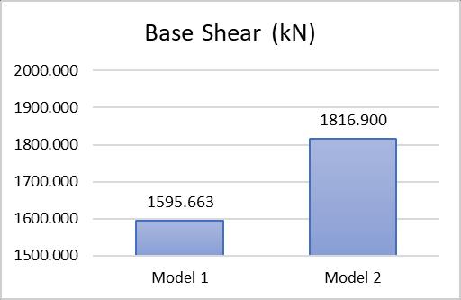 2) Theadditionofadropintheflatslabbuildingledtoa higheroverallweight,resultinginasignificantrisein the base shear. The Flat Slab with Drop Building (Model 2) displayed an increase of 13.86% in displacement compared to the Flat Slab Building (Model1).