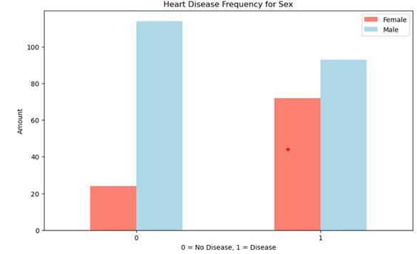 The above graph indicates the frequency of the males and femaleshavingdiseaseandnothavingdiseaserespectively