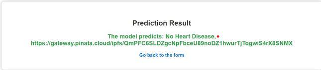 It predicts about the presence or absense of heart disease and also gives the connected link of blockchain where all thedataofpatientisstoredandwhichisimmutable.