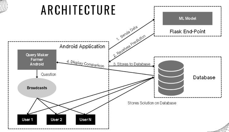 The backend architecture of our project is engineered to efficiently manage data flow and computational tasks associated with crop recommendation and estimated minimumsellingpriceprediction.Centraltothisarchitecture is the API built using Python's Flask framework, serving as the primary endpoint for user requests initiated from the Android application. The backend system encompasses severalmodules,including: