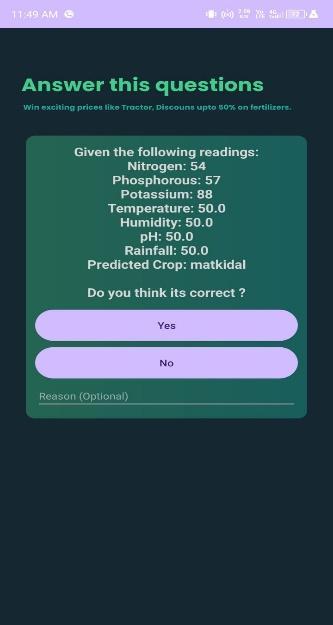 User feedback indicates high satisfaction with the application's usability and relevance. Comparative analyses show significant improvements in crop yields and profitability when using the application versus traditional methods. The integration of machine learning with human expertise enhances decision-making and supports sustainable agricultural practices. This synergy validates the effectiveness of the proposed system, which will continue to be refined and expanded to further leverage AI and communitycollaborationinagriculture.