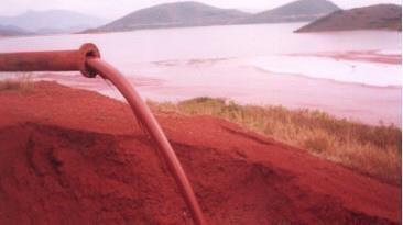 Redmud,collectedfromVijayawada,AndhraPradesh,India,isawasteproductgeneratedduringaluminaextractionfrom bauxite ore. The process involves grinding bauxite with caustic liquor, followed by desilication, digestion at 110–300°C, and classification in thickeners. Aluminates liquor overflows for filtration, while red mud underflow is washed and disposedofinponds.Redmudgeneration,often55-65%ofprocessedbauxite,typicallyresultsin1.2–1.4tons pertonof alumina.Fig.1 showtheredmudsamplescollectedforthestudy.