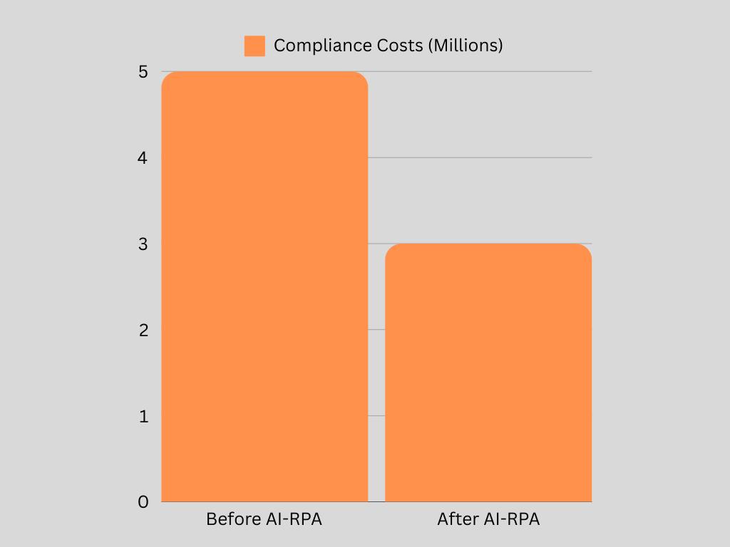 A major bank in Europe rolled out an AI-driven RPA system to tighten its anti-money laundering checks. They struggled withtoomanyfalsepositivesandrisingcostsfrommanuallyreviewingtransactions.Bybringinginmachinelearningand NLP tools, they managed to cut compliance expenses by 35% and slash false positives by half. This freed compliance officerstozeroinongenuinelyhigh-riskcases,makingthewholeprocessmuchmoreefficient[18].