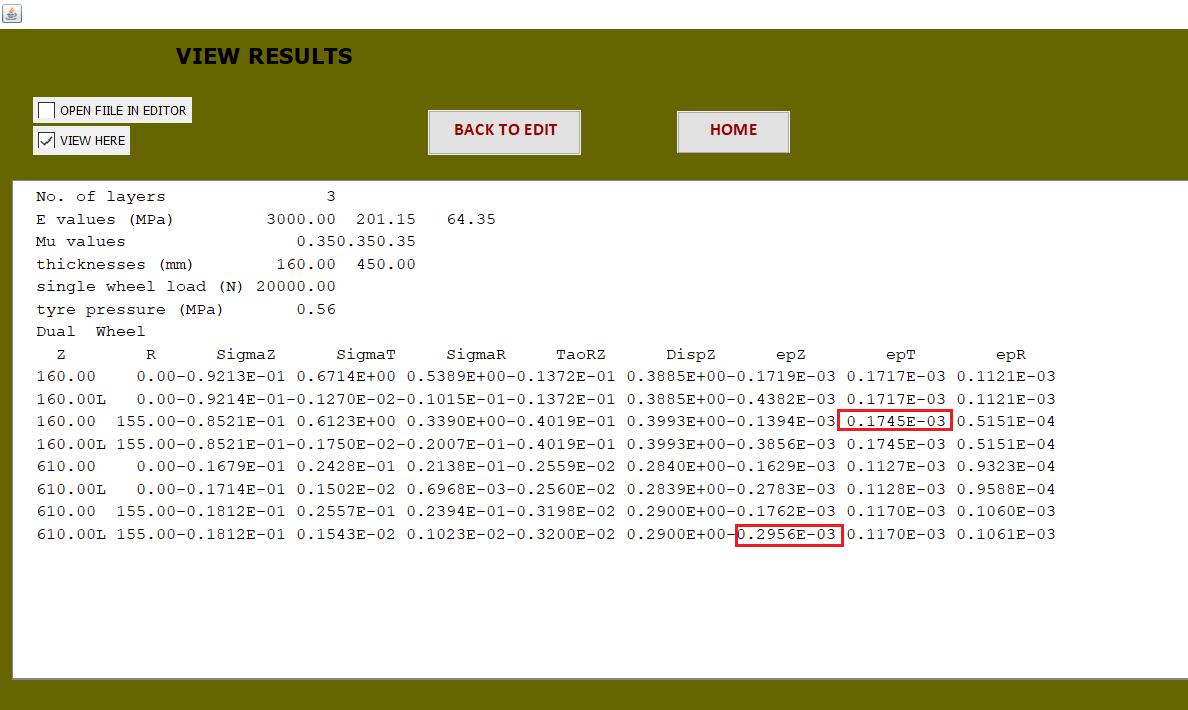 Thethicknessofeachlayerofpavementcanbereducedbyacertainamountinordertoreducethestraindifferences obtainedbyusingtwomethods:onefromformulasaccordingtoIRC37:2018,wherethevaluesofmaximumtensile strainandmaximumcompressivestrainarecalculatedusingairvoidsandotherparametersthatarementionedabove inthetables,andtheothermethodinvolvesthecalculationofthevaluesoftensileandcompressivestrainbyputting thevaluesofeachlayer.