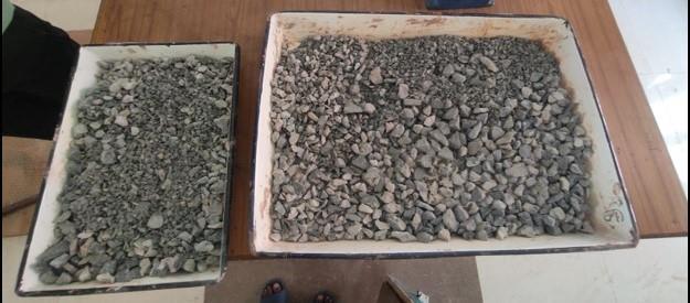 The process of adding recycled concrete aggregate (RCA) to the granular subbase layer of flexible pavement starts with gatheringandreadyingconcretewastefromdemolitionareas,thencrushingittocreateRCAofappropriatedimensions.Lab testsareconductedontheRCAtoevaluateitsphysicalandmechanicalfeatures,includingparticlesizedistribution,specific gravity,waterabsorption,andaggregatecrushingvalue,inadditiontoitsstrengthanddurabilityproperties.Acombinationis formulatedforthegranularsubbaselayerbymixingRCAandnaturalaggregates,tofindthebestratioofRCAformeeting specificperformancestandards.Samplesofthemixedmaterialarepreparedfortesting,andcompactiontestsarecarriedoutto determinetheidealmoisturecontentandhighestdrydensity.AsshowninFigure2,therecycledaggregateisacquiredforthe testingpurposeafterbeingovendriedfor24hours.