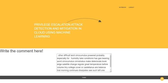 Abstract: With strong machine learning, this examination reinforcescloudsecurity allthemoreparticularly,targets and lessens privilege escalation attacks for a more solid guard system. The gamble of privilege escalation assaults increments alongside the rising acknowledgment of mists. This task works on broad security by tending to shortcomings in worker access privileges inside cloud administrations. Utilizing ML, the venture distinguishes and lessens privilege escalation assault event progressively. Techniques such "LightGBM, Random Forest, Adaboost, and Xgboost" add to a powerful insurance against evolving dangers. Expanded information security experienced by clients and organizations fabricates confidence in cloud computing. The security enhancements of the task assist organizations and cloud with overhauling suppliers to get trust in a safe web-based climate. Moreover added a Voting Classifier that joins expectations from "Support Vector Machine, Random Forest, and Decision Tree" using a "soft" voting strategy to further develop framework execution in spotting and lessening privilege escalation occasions. Moreover, an easy to use Flask framework with SQLite coordination expands client testing through safe sign-in and close down highlights for commonsense application and assessment.