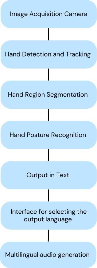 The methodology for the real-time multilingual sign language translator is structured into several stages, each addressingspecificaspectsofthesystem'sfunctionality.