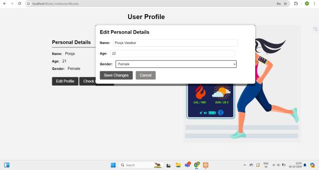 Profilepagewhereusercanenterthedetailslikename, ageandgender.Alsocaneditandcheckprogress