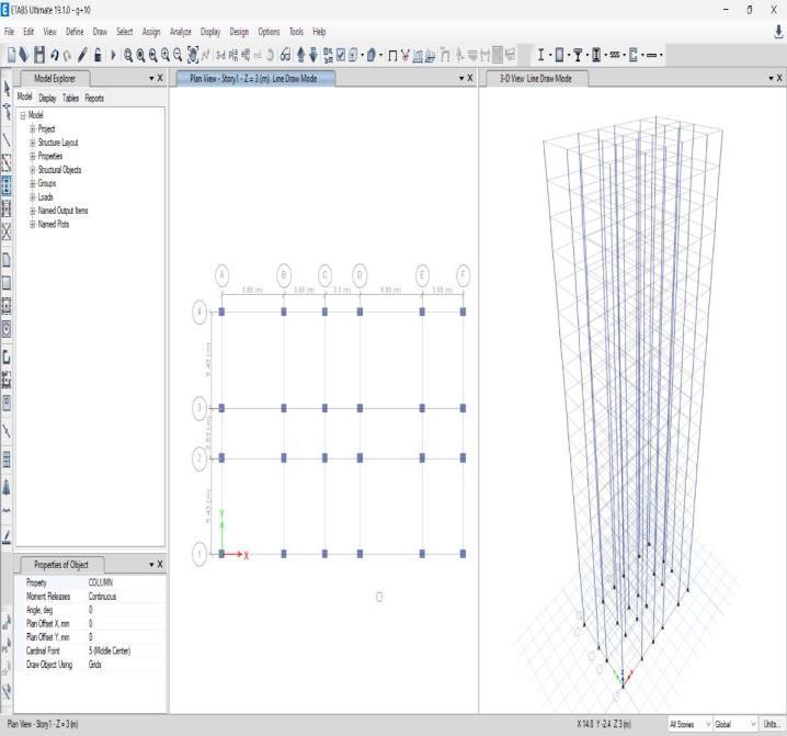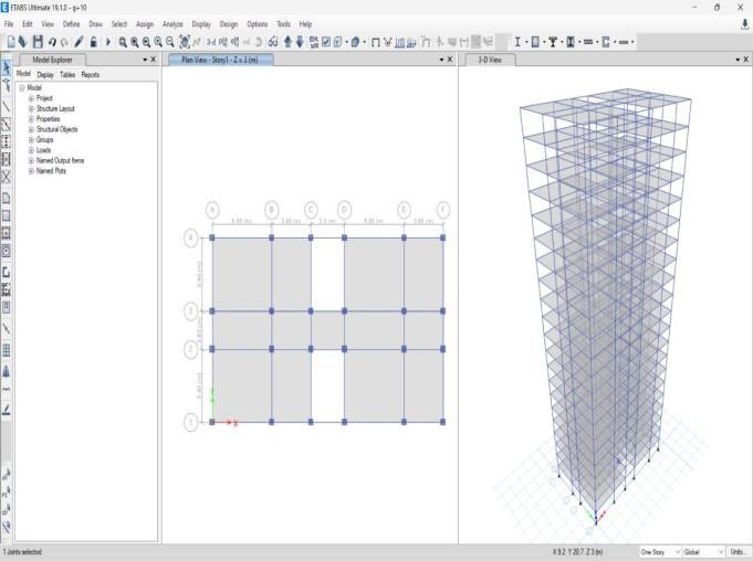 The modeling process in ETABS begins by selecting the appropriate design code for the project, ensuring the structure adherestotherequiredstandards.Theuserthensetstheunitsofmeasurementforthemodel,typicallyintermsofmetric units(e.g.,Newtons,meters)forIndianstandardcodecompliance.Oncetheunitsaredefined,thestructurallayoutofthe G+20 residential building is created by defining the floor levels, columns, beams, and slabs, as well as any structural elementslikewallsandfoundations[12]