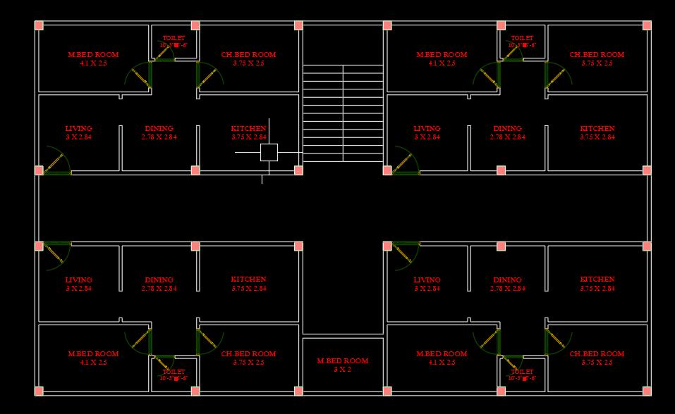 Support conditions are applied to model the real-life constraints, such as fixed, hinged, or roller supports, to simulate howthebuildingreactstoloads.Loaddefinitions,includingdeadloads,liveloads,windloads,andearthquakeloads,are thenassigned,inlinewiththerelevantstandards(IS875,IS1893).Finally,loadcombinationsaresetforanalysis,which are essential for ensuring the structure can withstand different loading scenarios. Once all parameters are defined, the modelundergoesstaticanalysistodeterminethebuilding’sresponseundervariousloads,andtheresultsareverifiedfor accuracy and compliance with the design codes. AutoCADfacilitatesefficientdraftingandvisualizationof2D/3Dmodels, offeringfeatureslikepowerfuldraftingtools,object analysis, and extensive plug-in support. It enables integration with variousutilitiesandbenefitsfromwidespreadtrainingresources[14]