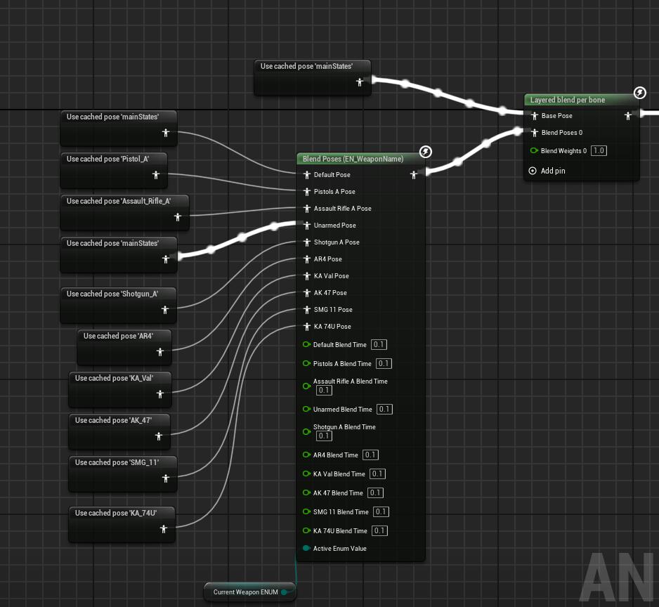 WithintheAnimationBlueprint,youcanalsocreateaState Machine, which governs the character's animation states, such as idle, walking, running, or jumping. Each state representsadifferentaction,andtransitionsbetweenthese statesare triggered by specificconditions,suchas changes in movement speed or player actions. The state machine worksintandemwiththeblendspacetoallowfordynamic and responsive animation. For example, as the character starts moving, the animation blueprint changes the state from idle to walking or running, and the blend space adjusts the animation based on the character’s speed. The state machine allows for smooth and logical transitions, ensuring that the player’s actions are reflected in the character'sanimationsinanaturalway.