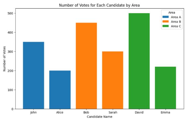 This table has columns like Candidate ID, Candidate Name, Area, and Number of Votes which show which