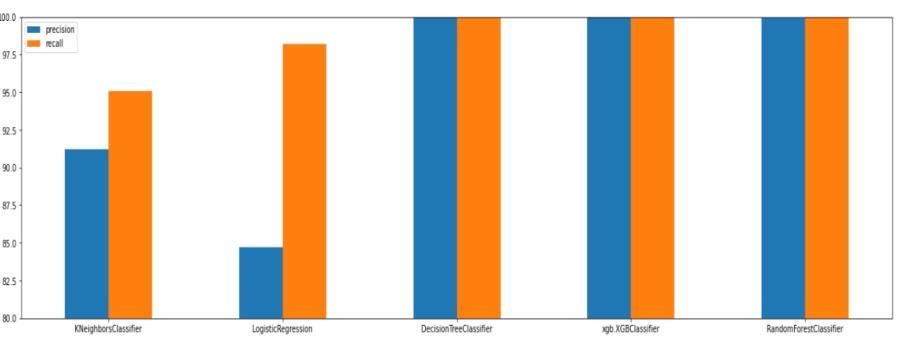 Figure 2 illustrates the precision and recall of the models, highlighting their ability to identify true positives accurately (precision) and detect all actual positives (recall). XGBoost demonstrated the highest values for both metrics, followed closelybyRandomForest,indicatingthesemodels'reliabilityintrustdetection.LogisticRegression,whileslightlylower, offered consistent performance with minimal computational complexity, making it suitable for resource-constrained environments.