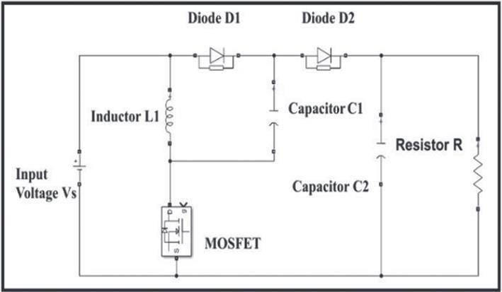 The circuit consists of a MOSFET switch S, Inductor L1, Diodes D1 and D2, capacitors C1 and C2, and a load resistanceR.Figure2.3showsthecircuitdiagramofPositive OutputSuper-LiftLuoConverter(POSLC).
