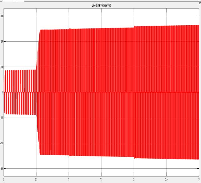 Figure9,showsthethreephaseinverterlineoutputvoltage waveform.Similartoconverteroutputvoltage,theinverter voltageincreasefrom80Vto250Vatt=0.5sduetoincrease inreferencespeed