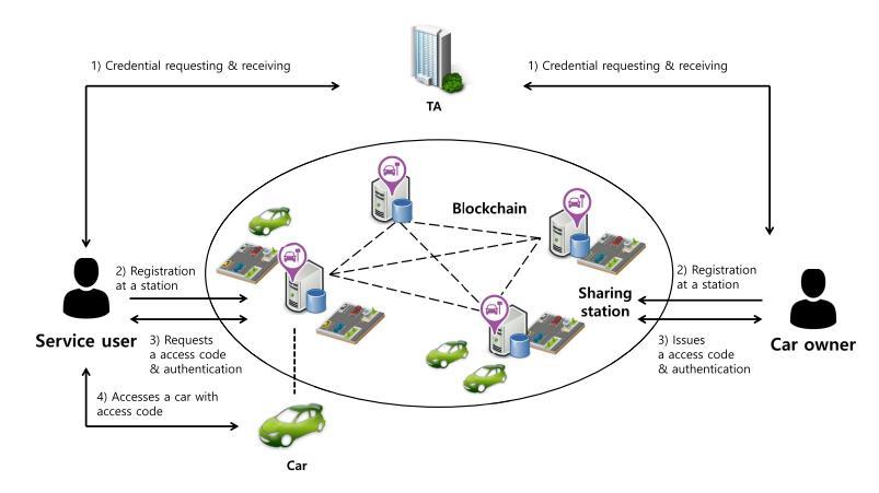 Userswhowishtouseasharedvehiclesubmitatrip-sharing requesttothevehicleownerthroughthestation.Therequest isprocessedthroughtheblockchain,allowingboththeuser and owner to securely exchange information, such as availability and terms of use, without the need for a centralizedintermediary.Blockchainensuresthatallactions taken during the trip-sharing process are authenticated, recorded,andauditable.