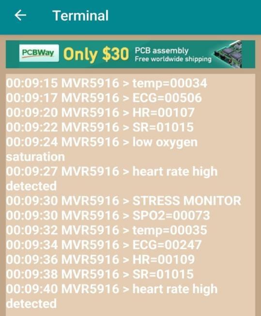 dataandcalculatesstresslevelsusingpredefinedalgorithms. A Bluetooth module transmits the processed data to the mobileapplication,whichfeaturesauser-friendlyinterface. The app displays live sensor readings and stress levels, categorizingthemas"Normal,""Moderate,"or"HighStress" for clarity. It also offers alerts for critical stress levels, encouraging timely user action. By providing immediate feedback, the application enhances the practicality of the system,allowinguserstomonitortheirstressconveniently whilesupportingbetterstressmanagementandoverallwellbeing