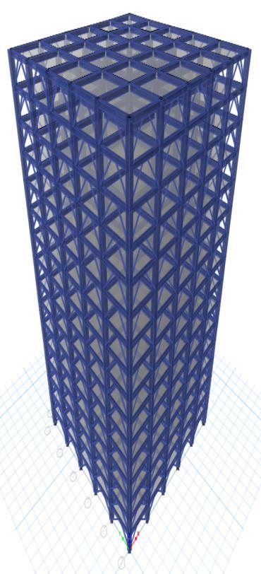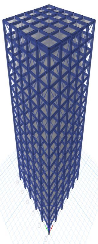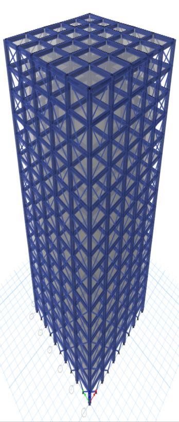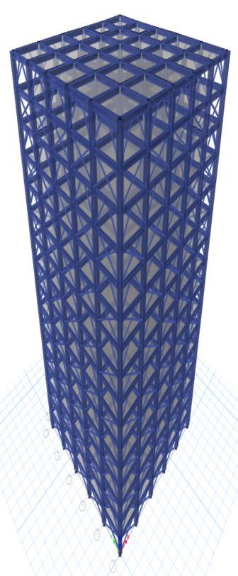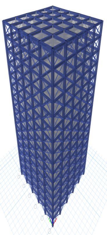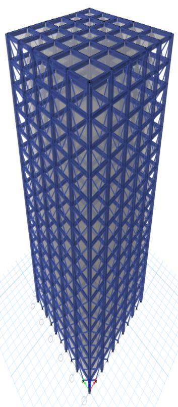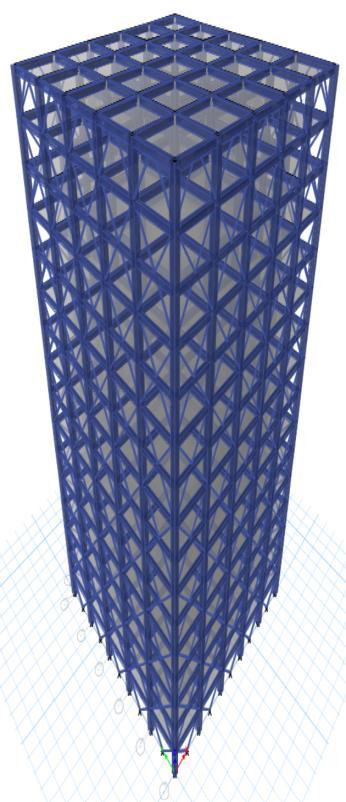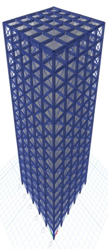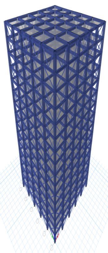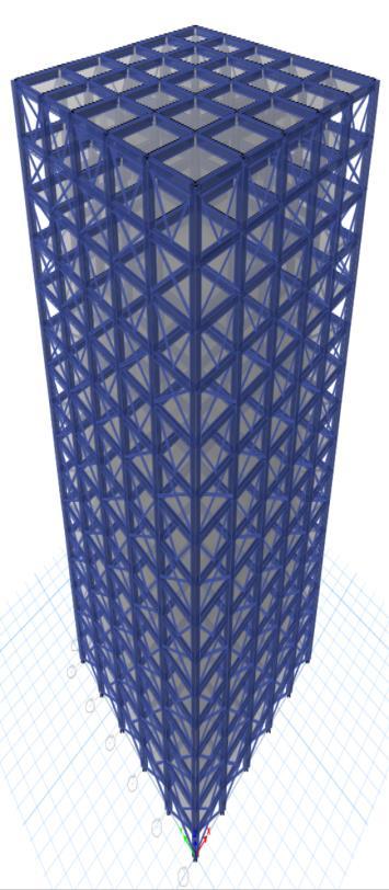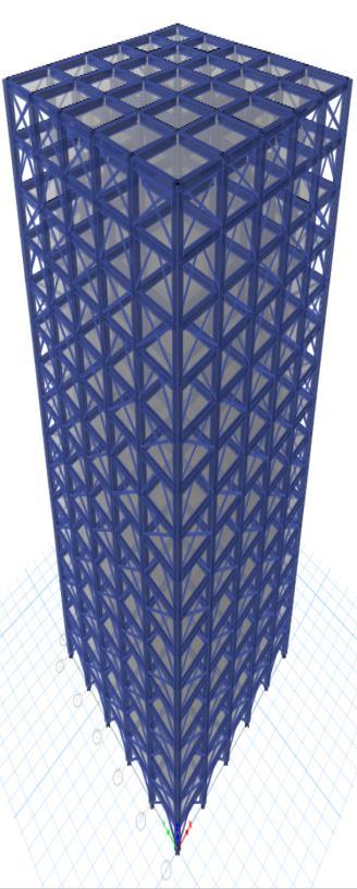 Thesteelbracesareusuallyplacedinverticallyaligned spans. This system allows to obtaining a great increase of stiffnesswithaminimaladdedweight.Concentricbracings increasethelateralstiffnessoftheframethusincreasesthe natural frequency and also usually decreases the lateral storey drift. Concentric bracing are designed to be in pure axialcompressionortensionwhenlateralloadsareapplied. Whenwindorseismicforcespushorpullonthebuilding,the braces either compress or stretch, transferring the load throughthediagonalbracestothecolumnsandbeams,which in turn transfer the forces to the foundation. This system operatesbasedontheconceptofaxialloadtransfer,which makesiteffectiveinresistinglateralforceswithoutinducing bendingorsignificantdeformationintheframe.