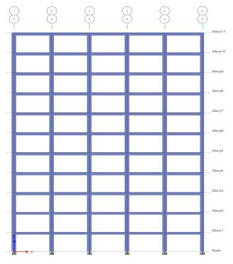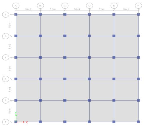 Plan, 3D and Elevation of Regular Bare Frame Structure modelcreatedinsoftwareasshowninfig1,2and3below.