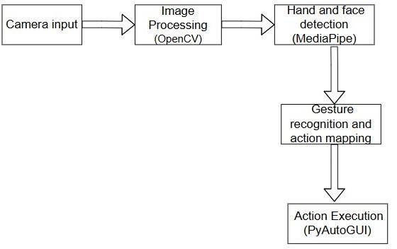 Keywords: Gesture-based control system, Hands-free interaction, MediaPipe, OpenCV, PyAutoGUI, Real-time processing, Human-computer interaction (HCI).