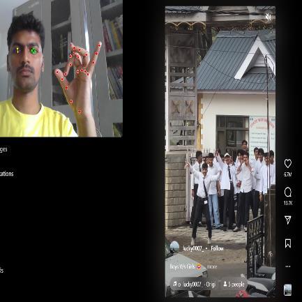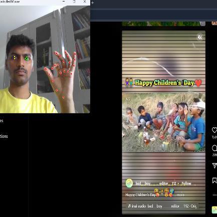 In conclusion, the Controlling Social Media Application using Computer Vision successfully showcases the power of computer vision to enable hands-free interaction with social media platforms. By integrating real-time gesture recognitionandeye-trackingtechnologies,thesystemoffersanintuitive,responsive,andaccessibleuserexperience.It caterstoindividualswithphysicallimitationsandprovidesatouch-freeinterface,enhancingusabilityacrossvarious environments. While performance can be improved under varying lighting conditions, the system lays a strong foundation for further development in human-computer interaction, emphasizing inclusivity, practicality, and innovation.