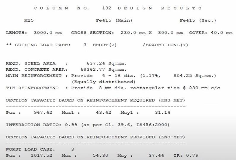 Fig-7: SummaryofReinforcementofColumnNo.132