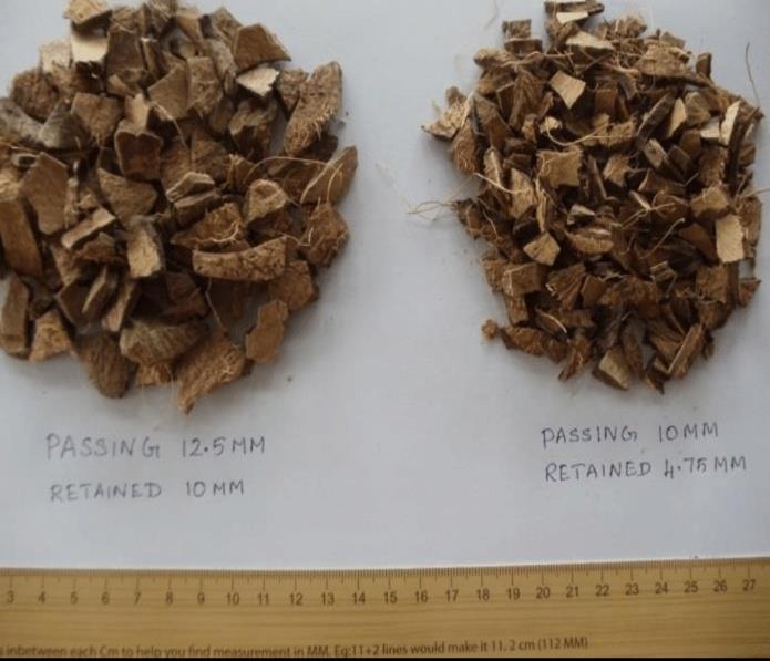 Oncethecoconutwasteiscollected,itundergoesatesting phase to identify the most suitable shells for partial replacement of coarse aggregate in concrete. After evaluating and selecting the appropriate materials, they arethenusedinthemixproportioningprocess.