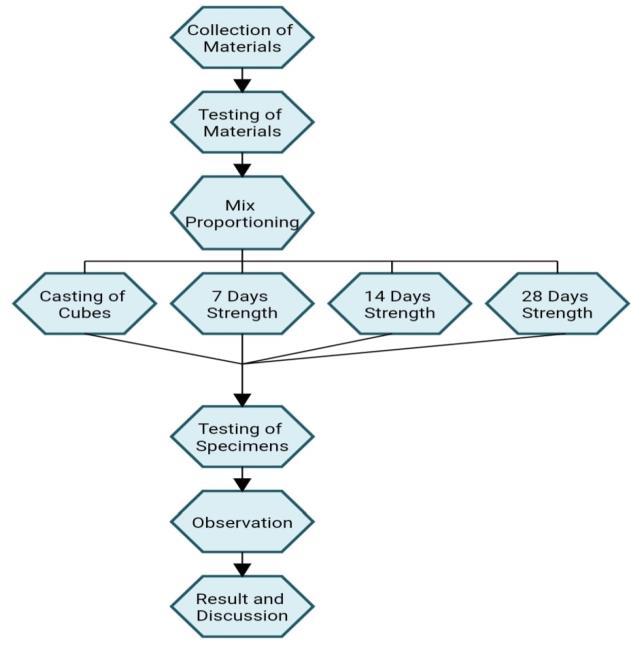 In this step, various properties of concrete are studied, focusing on the effects of partially replacing coarse aggregate with coconut shells. Balancing the trade-offs between strength, workability, and durability is critical, which is achieved by selecting suitable mix proportions and material processing methods. Moreover, using coconut shells as an aggregate can reduce construction material costs due to their abundance and low cost, thus offeringaneco-friendlysolution.