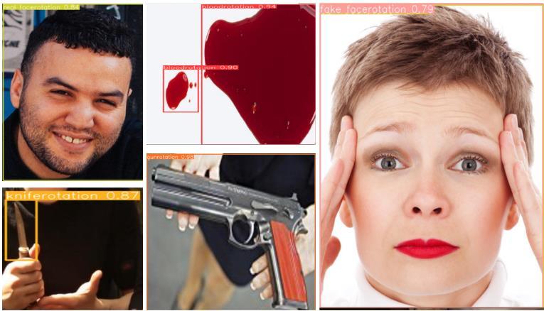 Object Detection: Leverage the trained model's capabilities to pinpoint and localize various objects, including weapons, evidence of violence like bloodstains, and facial features, thereby facilitating crime investigation and prevention endeavors.