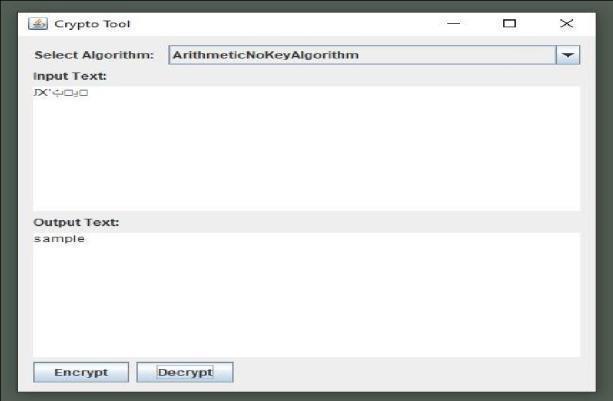 both the symmetric as well as Asymmetric key cryptographicalgorithms specificallykeepingitseye onall-in-oneencryptionstandardsviaincorporating major four encryption modes Caesar Cipher, AES Algorithm,ModifiedCaesarcipher,RSA.SixAlgorithms we have inserted here out of which two are indigenously made named as Arithmetic No Key AlgorithmandBitManipulationAlgorithm.Motivation for building this project comes from software Engineering Project where we come up with lots of ideasandfinally,wefinalizethistopic.