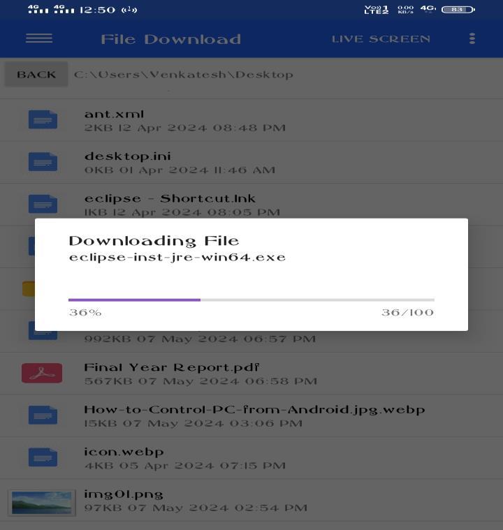 The primary objective of our project is to bridge the gap betweenmobiledevicesandcomputersystems,empowering users to browse, search, and download files from their computer'sshareddriveremotely.Usersnolongerneedtobe physically close to the computer in order to retrieve importantfilesbecauseamobileapplicationgrantsaccessto the shareable drive on the computer. This feature allows userstoengagewiththeircomputersystemsindependently andwithoutregardtolocation,improvingaccessibilitywhile simultaneouslypromotinggreaterflexibility.Oursuggested model essentially aims to rethink the idea of remote computeraccessbyallowinguserstoeasilyincludemobile devices into their computing workflows for increased convenienceandproductivity.