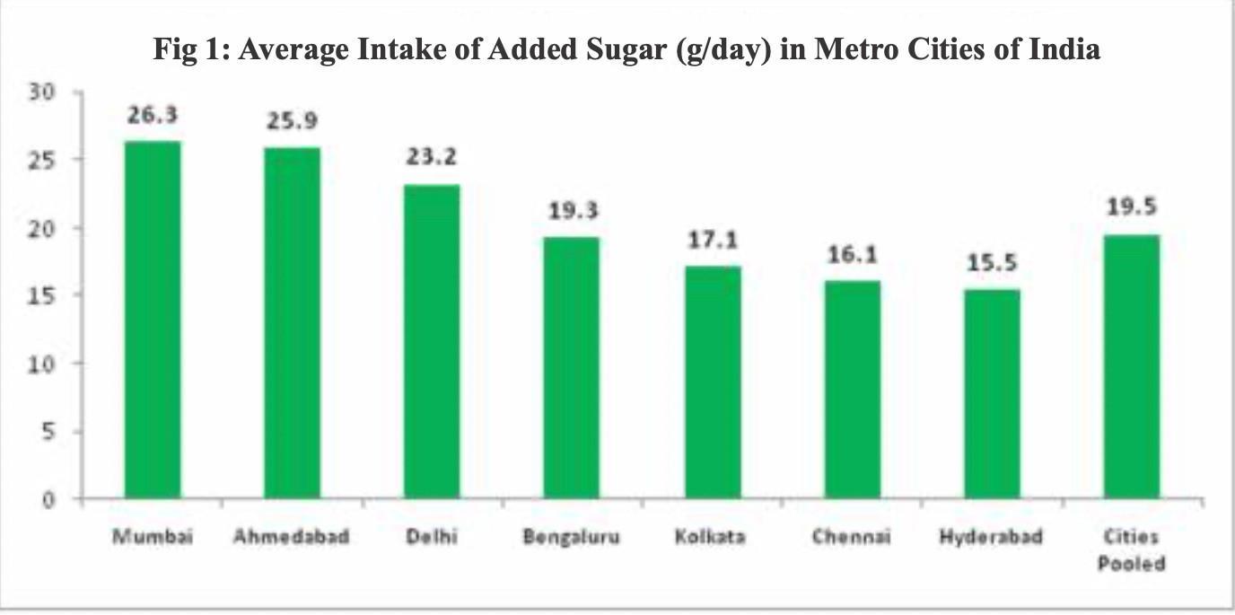 • Moreover, a sugar study report conducted in 2015-2016 by the ICMR National Institution of Nutrition found that adultsandolderpeopleconsumedmoresugarthanyoungerones.Thehighestintakeofsugarwasobservedbetween adultsaged36-59,at20.5grams.